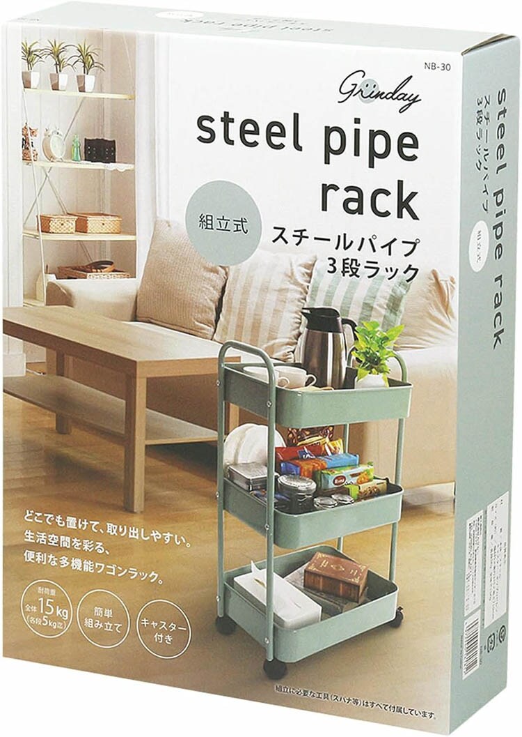 カクセー Grinday スチールラック 3段 組み立て グリーン NB-30 (1個)