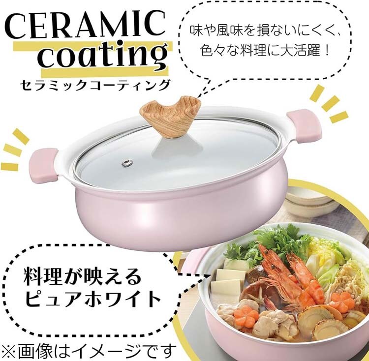 ●料理を美しくおいしそうに見せるピュアホワイトなセラミックコーティング。
