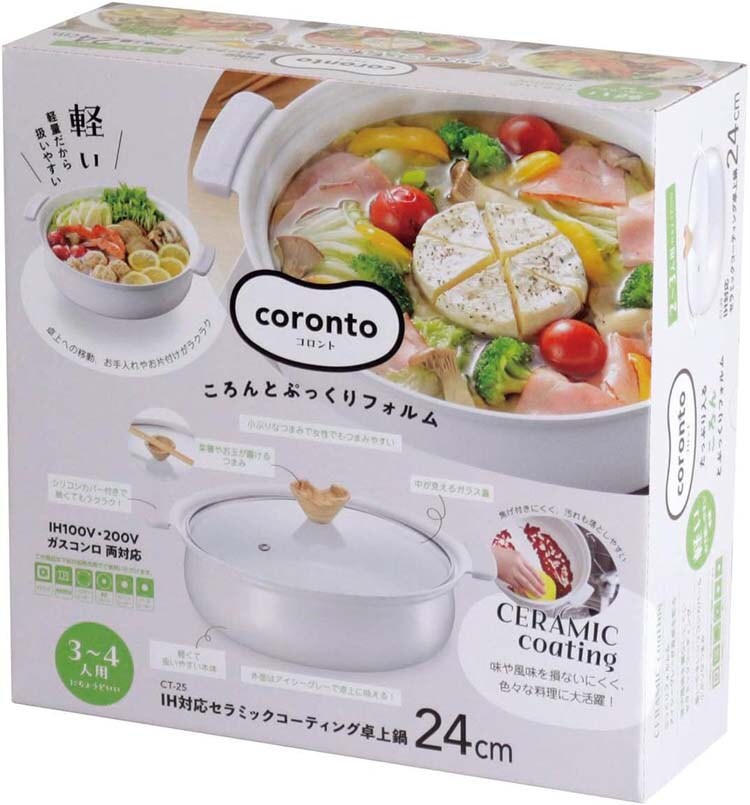 【カクセー コロント IH対応 セラミックコーティング 卓上鍋 24cm グレー CT-25の商品詳細】