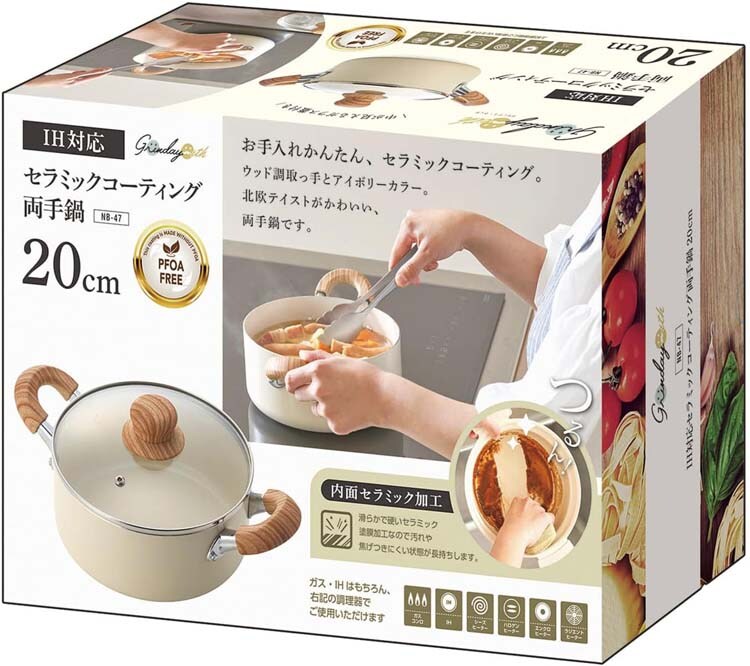 カクセー グリンデイ・ウィズ IH対応 セラミックコーティング 両手鍋 20cm NB-47 (1個)のレビュー
