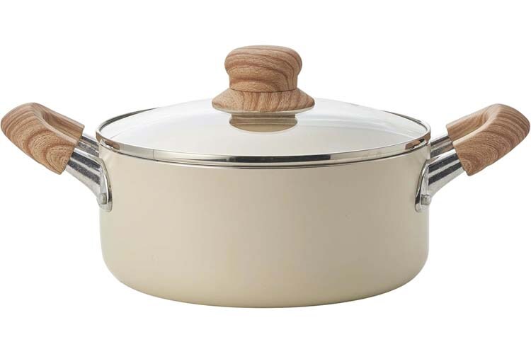 ●ウッド調取っ手とアイボリーカラー。北欧テイストがかわいい、両手鍋です。