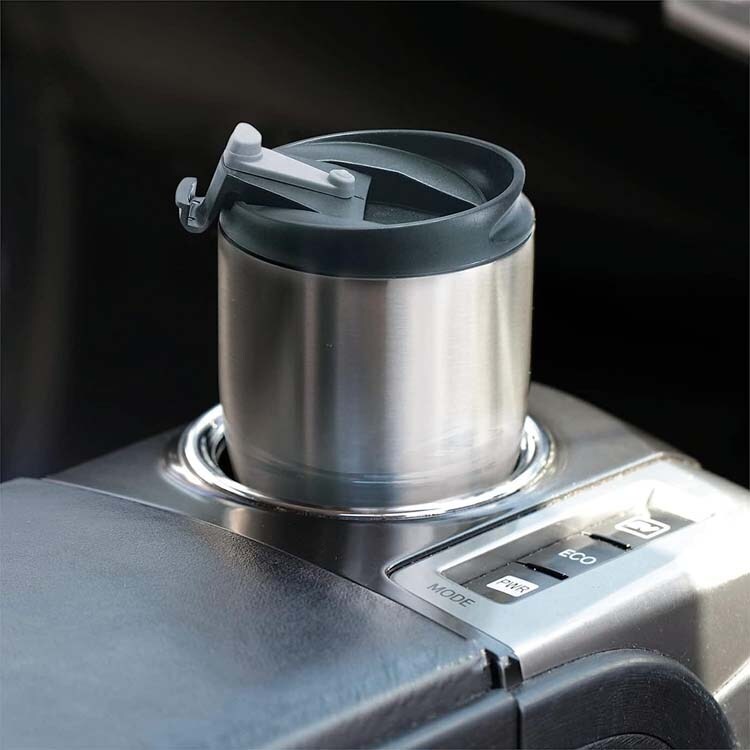 広口タイプながらボトムスリムな形状だから持ちやすく、ドリンクホルダーにもスッポリ入ります。アウトドアやドライブのお供にぴったりです。
