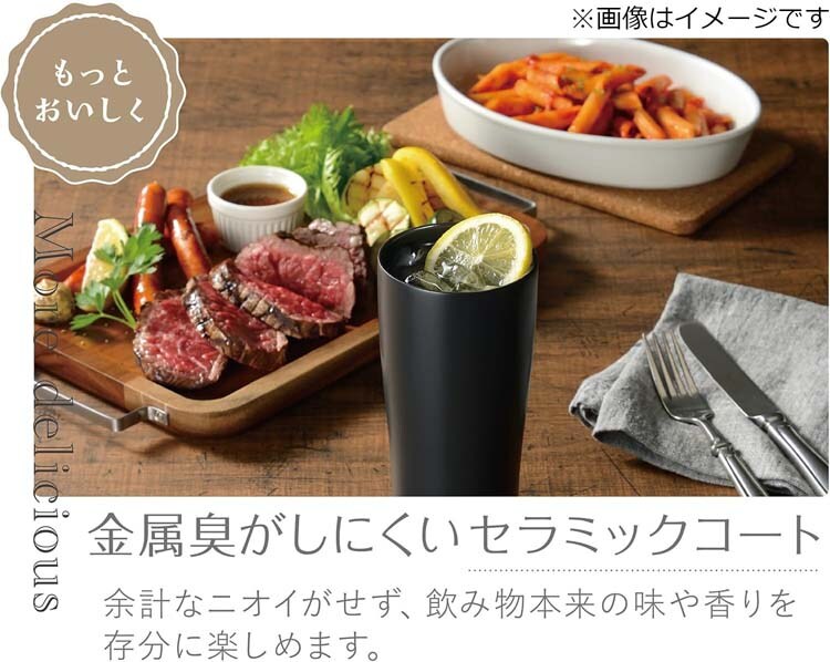 | 本体サイズ:約直径7.5×高さ16.2cm 容量:450ml 素材:内側/ステンレス鋼(セラミック塗装)、外側/ステンレス鋼 |