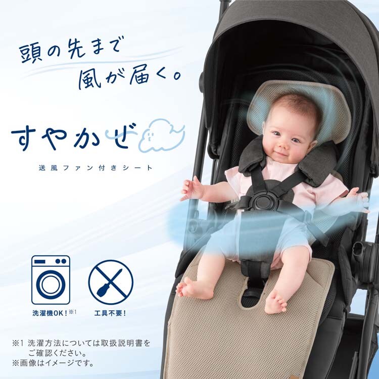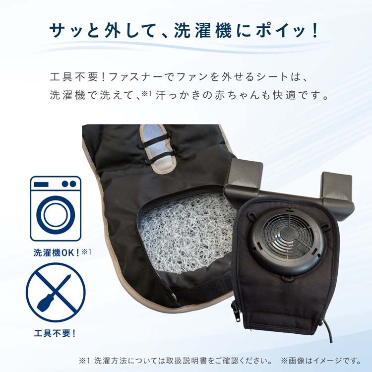 ●工具不要!さらに洗濯機OK!ファンはファスナーで簡単に取り外しができるので工具は不要。シート部分はネットに入れて洗濯機で丸洗いできます。汗で汚れやすい夏も、清潔に使い続けられ、汗っかきの赤ちゃんも快適です。