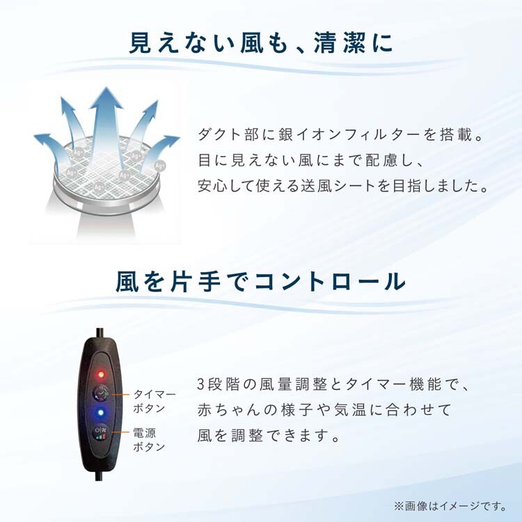 ●3段階の風量調整とタイマー機能で、赤ちゃんの様子や気温に合わせて風を調整できます。