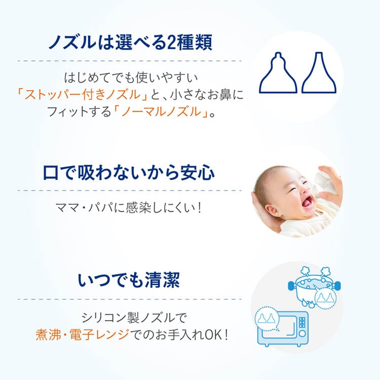 ※の吸引力でサラサラ鼻水からドロドロのしつこい鼻水までしっかり吸引。