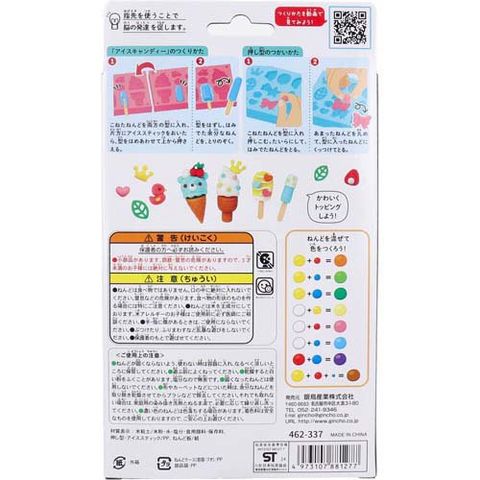 | ・個装重量:約227g ★材質表示 ・米粘土:米粉・水・塩分・食用顔料・保存料 ・押し型・アイススティック:PP ・ねんど板:紙 ★対象年齢 ・3才以上 |