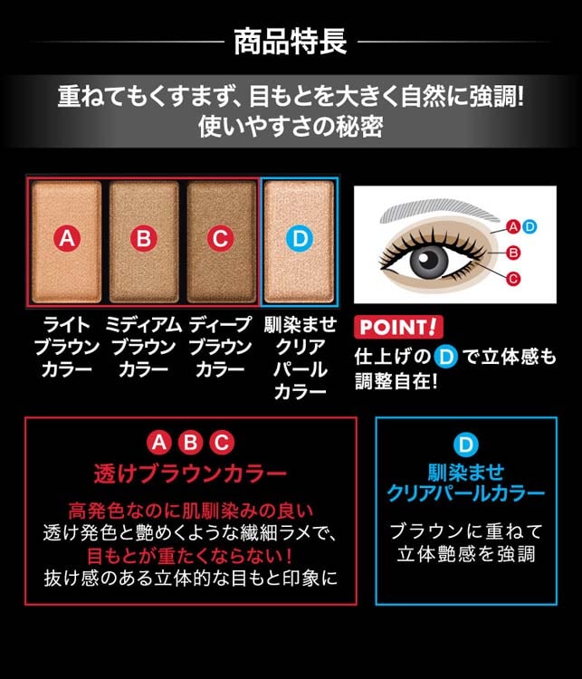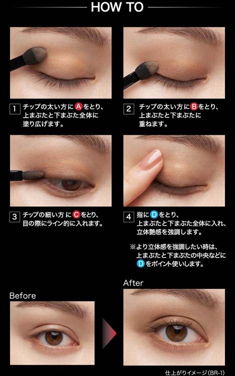 ・より立体感を強調したい時は、Dをさらに上まぶたと下まぶたの中央などにポイントおきしてお使いいただくことも可能です。
