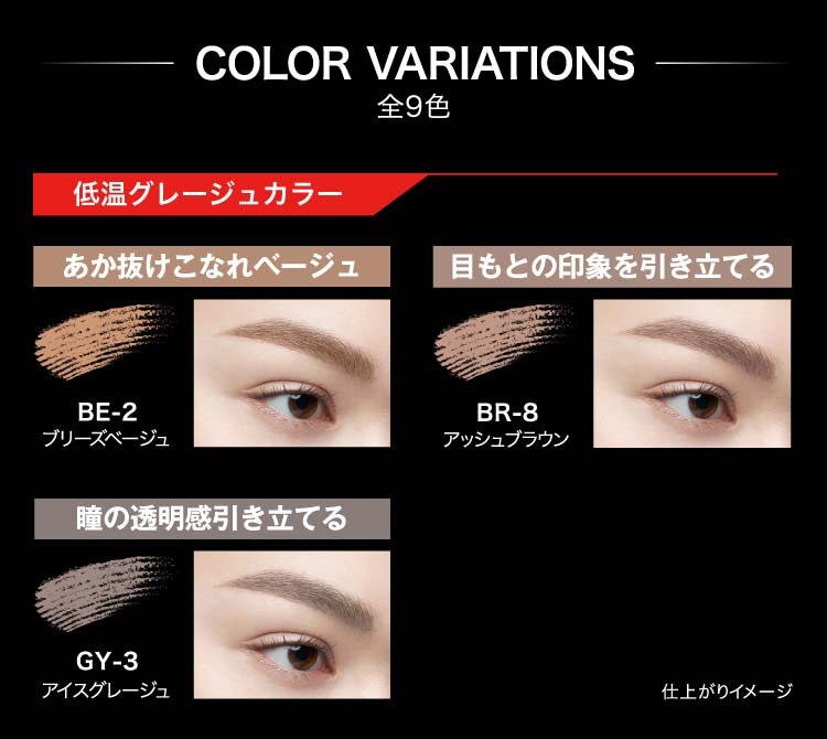 ●自眉の黒さを抑えて、高発色な色づきを実現