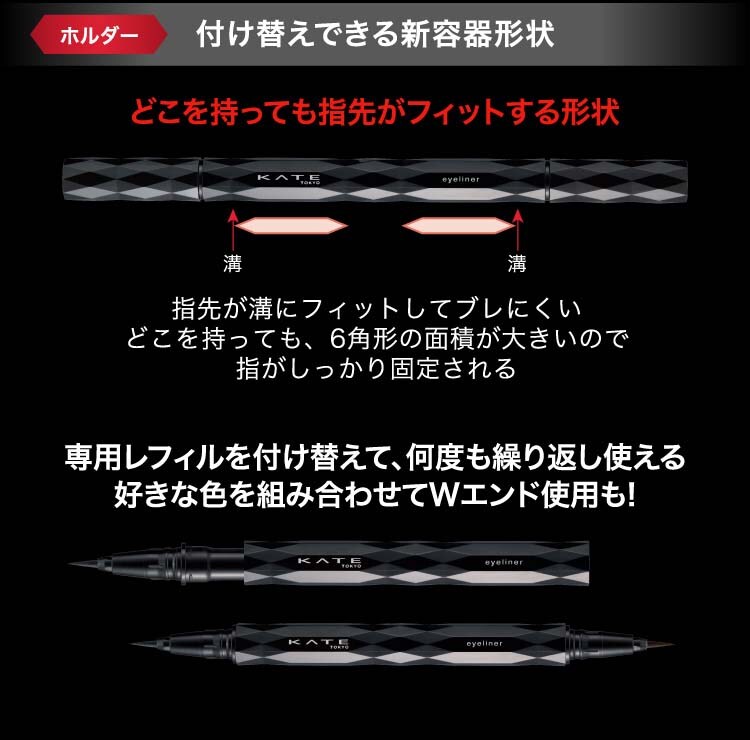 ●強い筆圧でも、どこを持っても極細ラインがブレずに描け、色が長時間持続するリキッドライナー