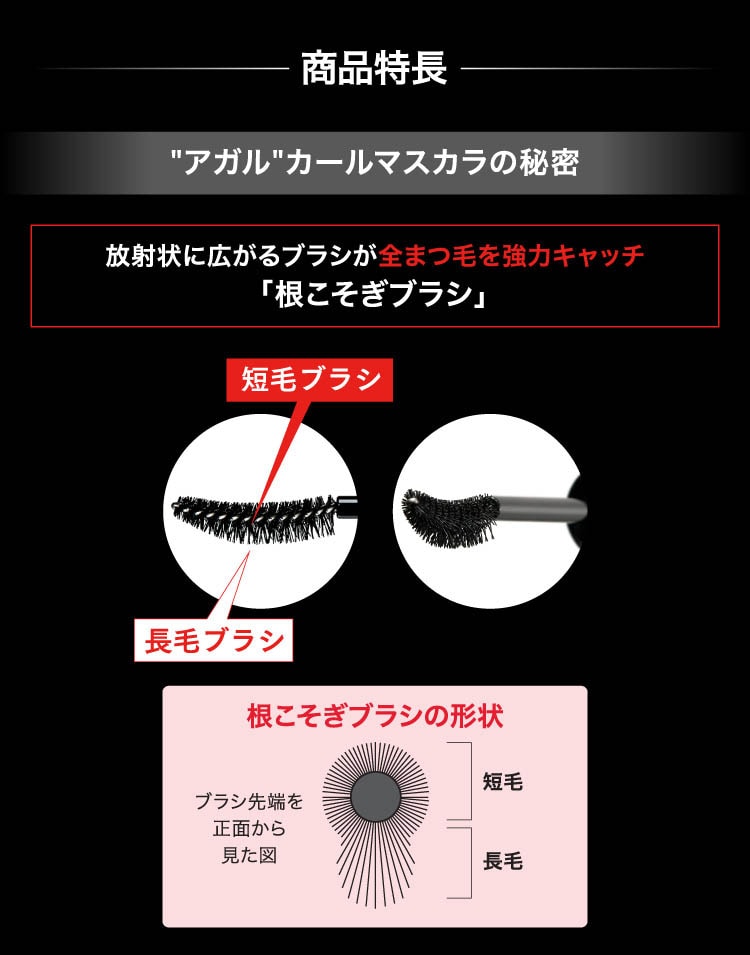 ●放射状に広がるブラシで全まつ毛を強力キャッチ