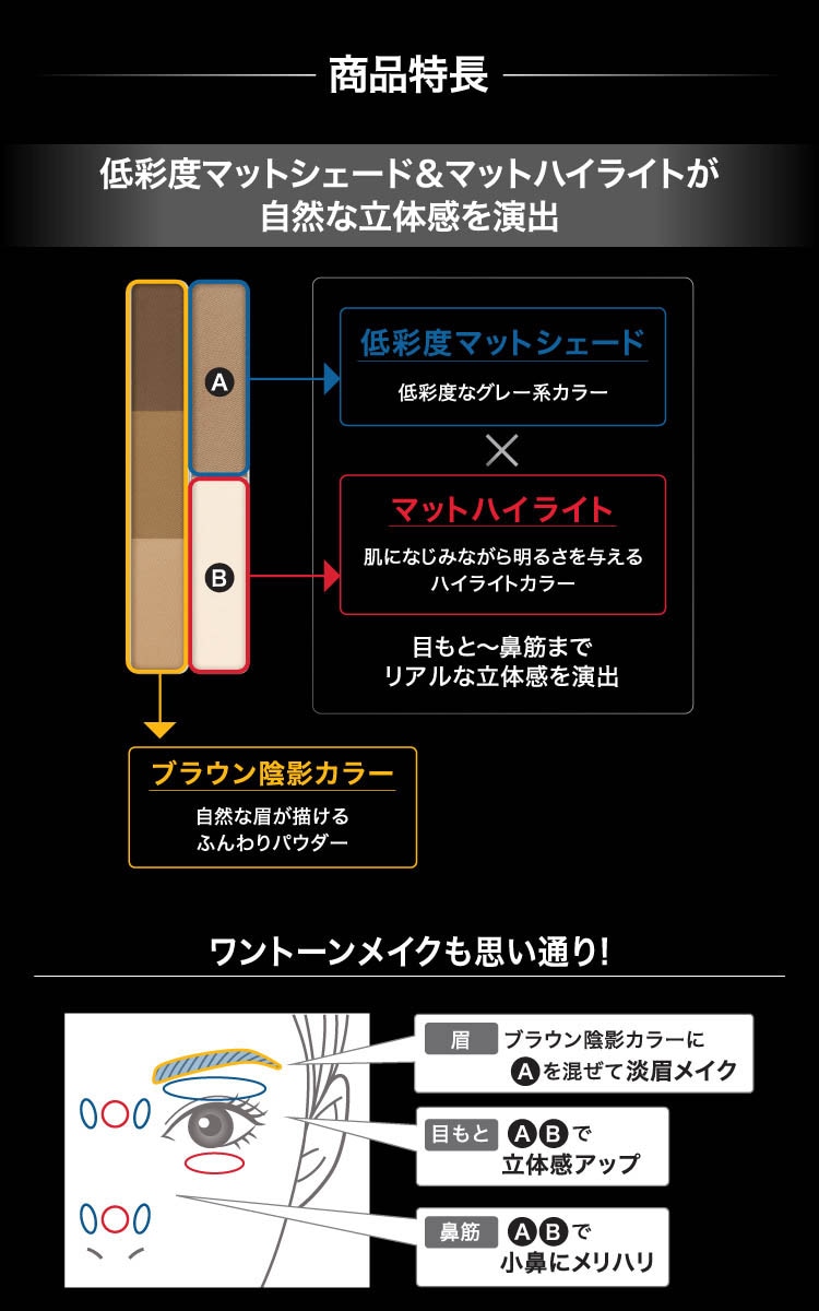 ●マット質感のハイライトとシェードで肌から浮かずに立体感