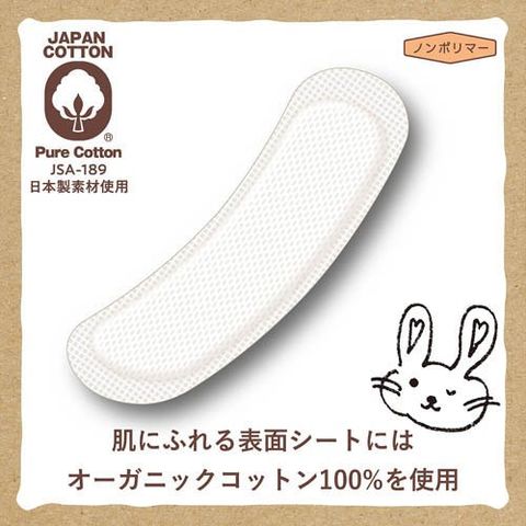 ●無農薬有機栽培のコットンのみをお肌に触れる表面シートに使用しています。オーガニックコットン100%。