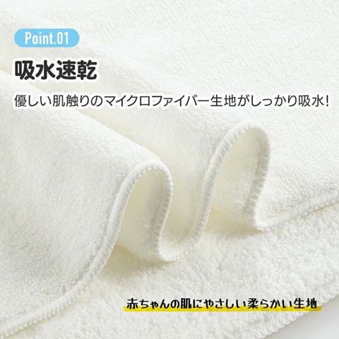 ●優しい肌触りのマイクロファイバー生地がしっかり吸収。