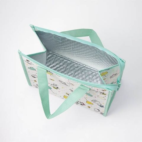表地:不織布・ポリプロピレン、中地:ポリエステル、持ち手・パイピング:ポリプロピレン、裏地:アルミ蒸着フィルム