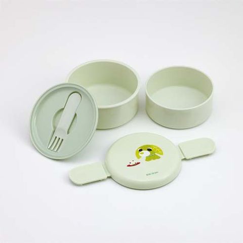 丸型 ランチボックス 2段 500ml ミニフォーク付 お茶犬 リョク ONWR1 (1個)