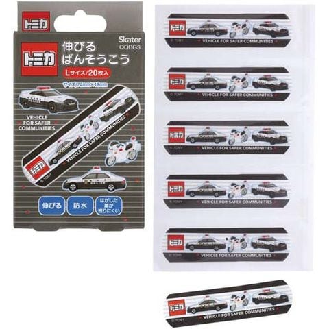 伸びるばんそうこう ぴたっと伸縮 キャラ 子供絆創膏L トミカ QQBG3 (20枚入)