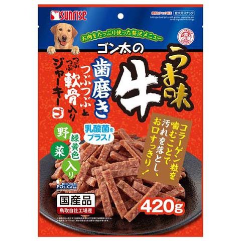 ゴン太のうま味牛 歯磨きつぶつぶとつぶつぶ軟骨入りジャーキー 緑黄色野菜入り (420g)