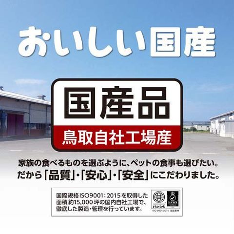 | たん白質:16.1%以上、脂質:1.7%以上、粗繊維:4.0%以下、灰分:5.5%以下、水分:25.0%以下、代謝エネルギー:291kcal/100g |