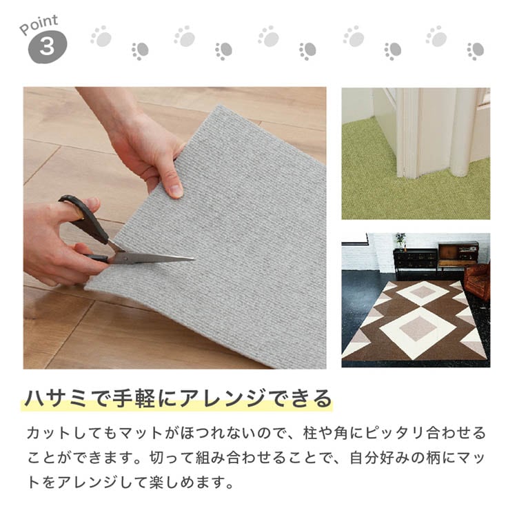 ●掃除機をかけても、裏面の吸着効果でめくれ上がることがないので、お掃除もラクラク!