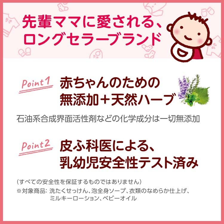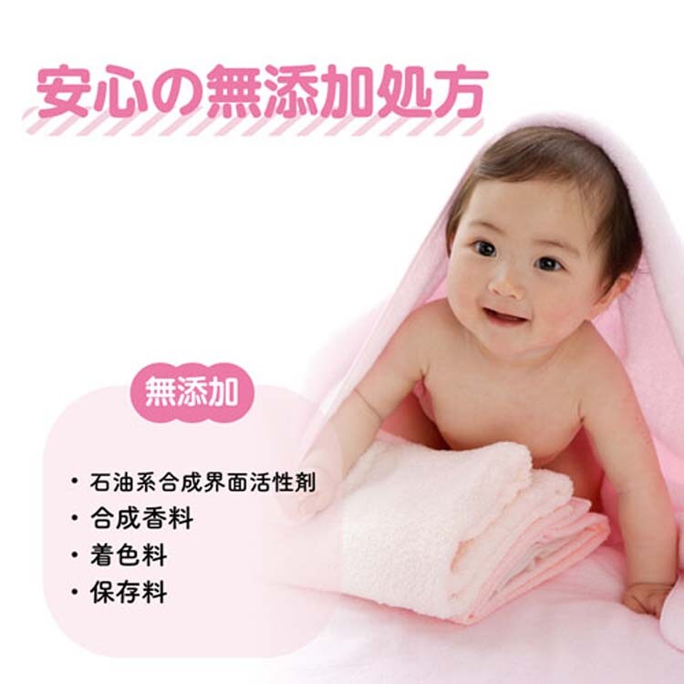 ●洗たくせっけん専用仕上げ剤。吸水性UP、洗濯槽の防カビ、肌まさつ低減。赤ちゃんの未来を育む無添加※。