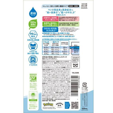 ヤシノミ洗たく洗剤 濃縮タイプ ポケモンデザイン ピカチュウ&ポッチャマ (520ml)