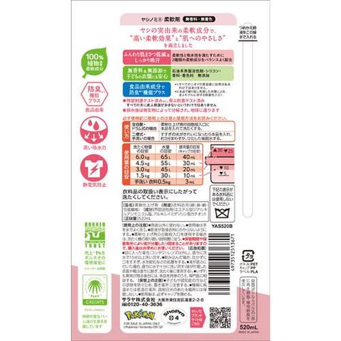 ヤシノミ柔軟剤 ポケモンデザイン ピカチュウ&クワッス (520ml)