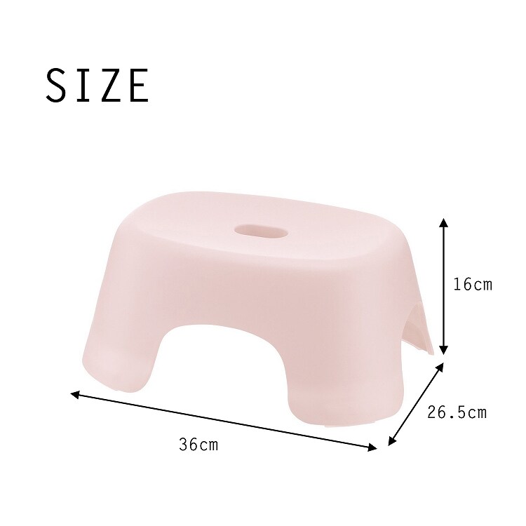 | 商品サイズ(約)・・・36.4*26.5*16(H)cm 座面の高さ(約)16cm 耐熱温度・・・本体100度、ゴム足80度 耐荷重(約)・・・100kg |