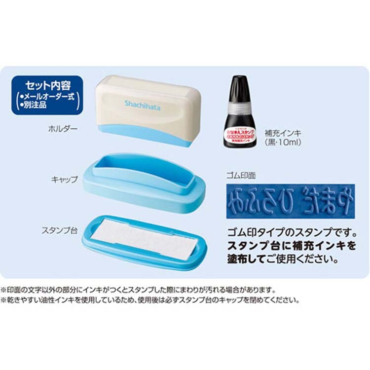 | ホルダー×1、キャップ×1、スタンプ台×1、ゴム印×1、補充インキ×1 |