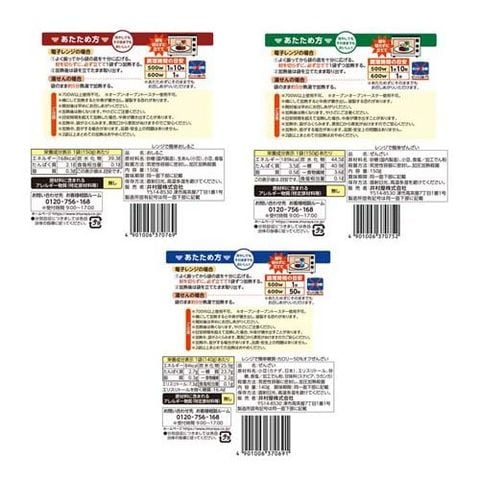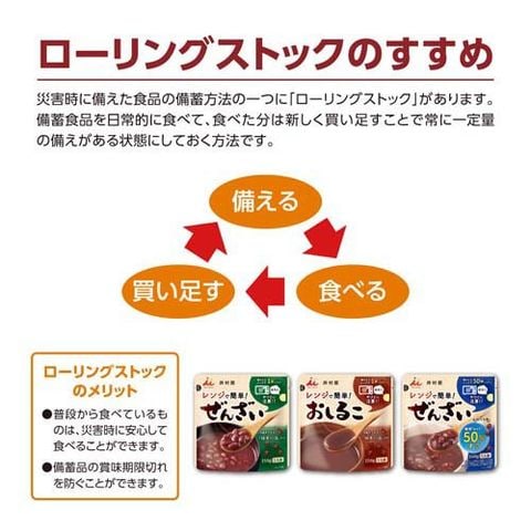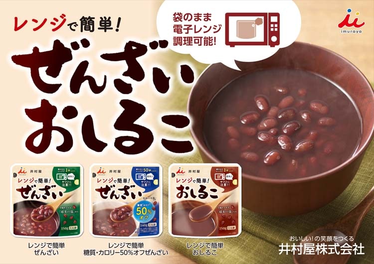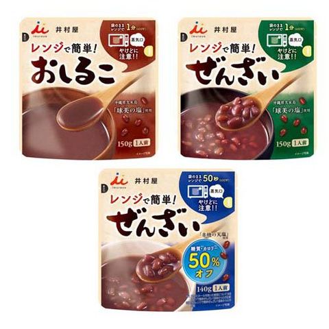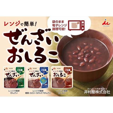 | ★ぜんざい 砂糖(国内製造)、小豆、食塩/加工でん粉 ★糖質・カロリー50%オフぜんざい 小豆(カナダ、日本)、エリスリトール、砂糖、食塩/加工でん粉、甘味料(ステビア、ラカンカ) ★おしるこ 砂糖(国内製造)、生あん(小豆)、小豆、食塩 |