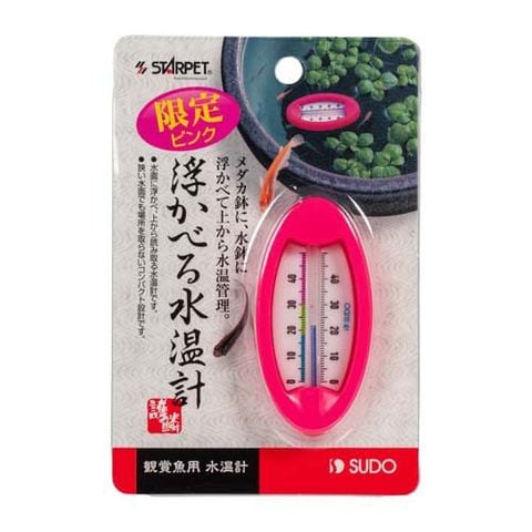 ●メダカ鉢や水鉢に浮かべ、上から読み取る水温計です。