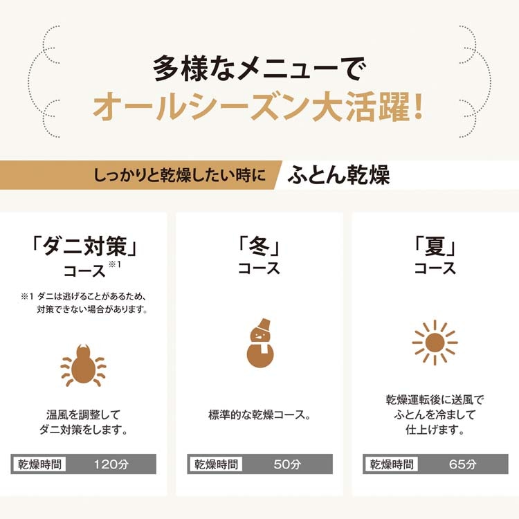 ・「ダニ対策」コース※1:≪温風を調節してダニ対策をします。乾燥時間120分