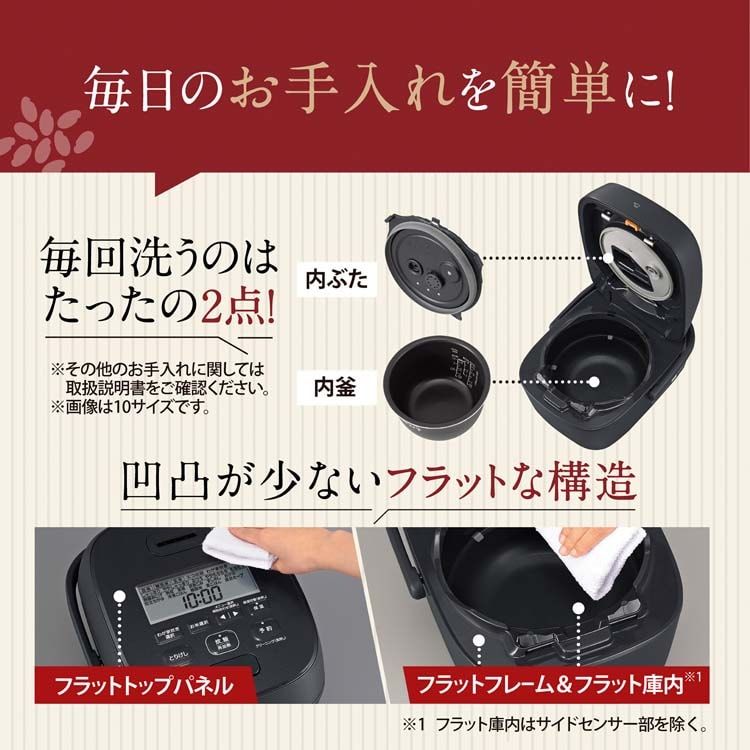 ●お手入れ簡単「蒸気口セットなし」 「フラットトップパネル」「フラットフレーム」「フラット庫内(サイドセンサー部は除く)」