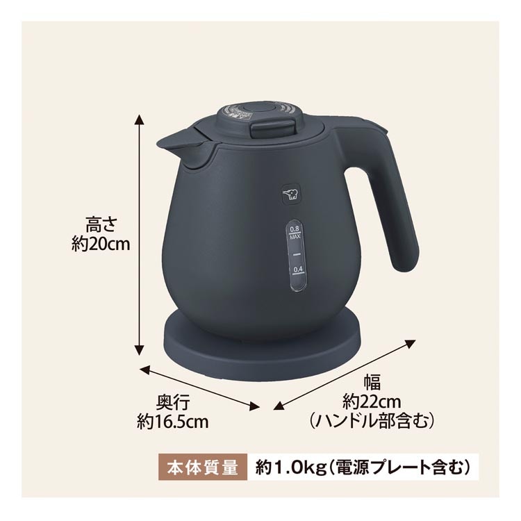 【象印 電気ケトル 800ml ソフトブラック CK-DC08-BMの商品詳細】