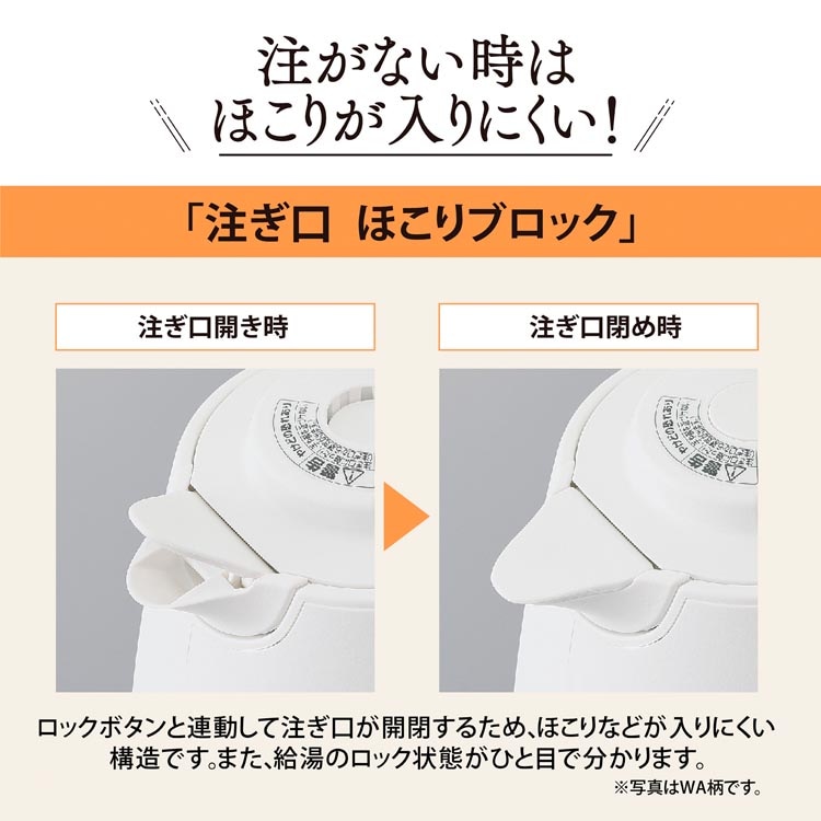 ●清潔!ほこりの入りにくい「注ぎ口ほこりブロック」