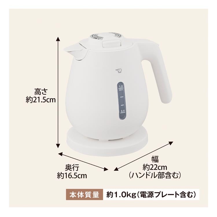 【象印 電気ケトル 1L ホワイト CK-DC10-WAの商品詳細】
