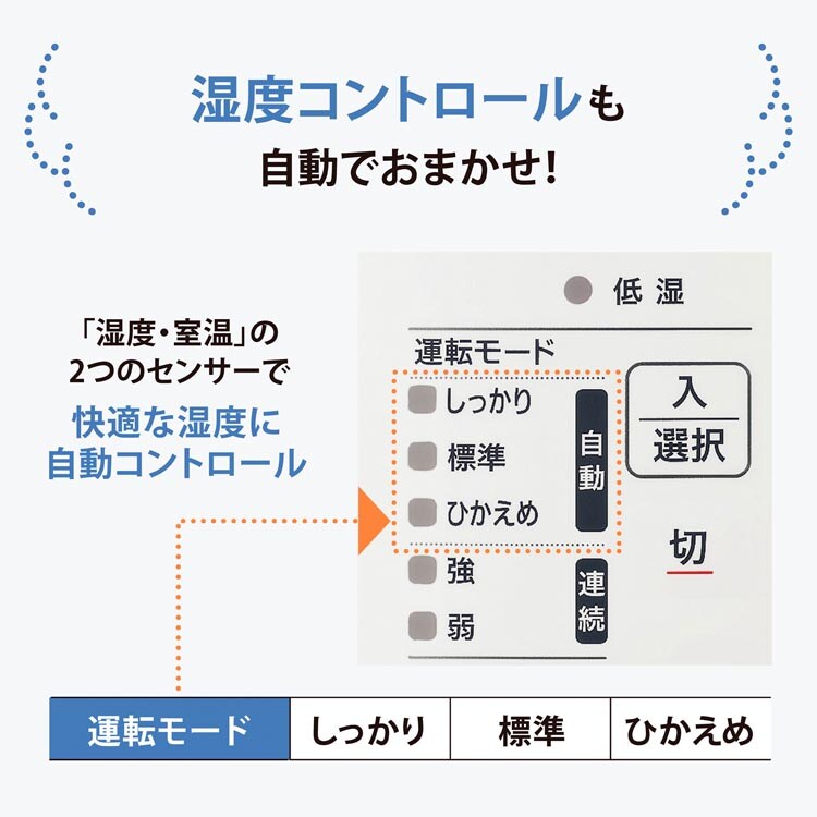 ●2つのセンサーで湿度を自動コントロール「自動加湿3段階」