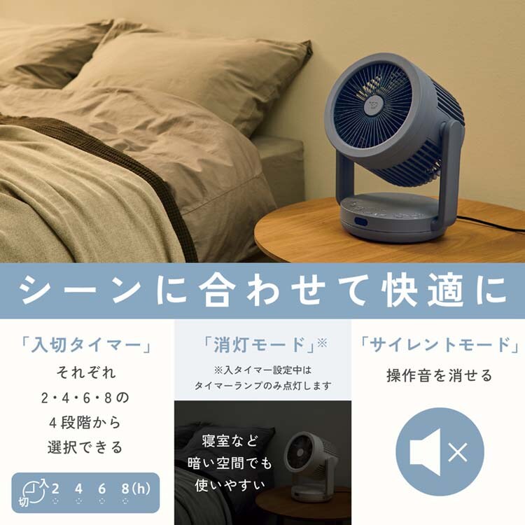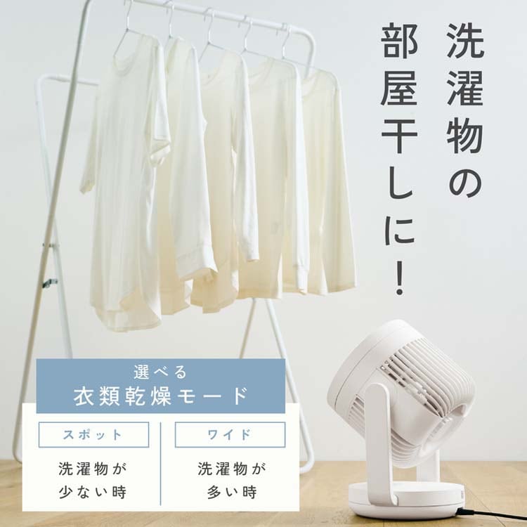●「サーキュレーターの風」と「扇風機の風」を自動で切りかえ、首振り運転をしながら空気循環を行います。
