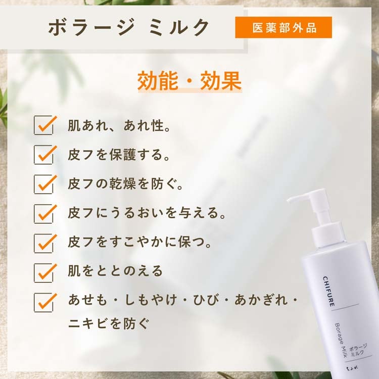 | (有効成分) 肌あれ防止成分:グリチルリチン酸2K 0.10% (その他の成分) 油性エモリエント成分:流動パラフィン 8.00%、セタノール 1.00%、サラシミツロウ 1.00%、ワセリン 1.00%、スクワラン 0.50%、エチルヘキサン酸セチル 0.50% 保湿成分:濃グリセリン 5.00%、BG 3.05%、ヒアルロン酸ナトリウム(2) 0.03%、シソエキス(1) 適量 、チョウジエキス 適量 皮フ保護成分:ボラージオイル 2.99% 乳化剤:親油型モノステアリン酸グリセリル 1.00%、ポリオキシエチレンセチルエーテル 0.95%、テトラオレイン酸ポリオキシエチレンソルビット 0.10%、モノステアリン酸ポリエチレングリコール 0.05%、縮合リシノレイン酸デカグリセリル 0.01% 防腐剤:メチルパラベン 0.20%、フェノキシエタノール 0.16%、プロピルパラベン 0.10% 増粘剤:キサンタンガム 0.13%、カルボキシビニルポリマー 0.09% 中和剤:水酸化K 0.09% キレート剤:EDTA-2Na 0.02% 製品の酸化防止剤:天然ビタミンE 0.02% 成分の酸化防止剤:d-δ-トコフェロール 0.01%、トコフェロール 適量 、BHT 適量 安定化剤:無水エタノール 適量 基剤:精製水 全量を100%とする |