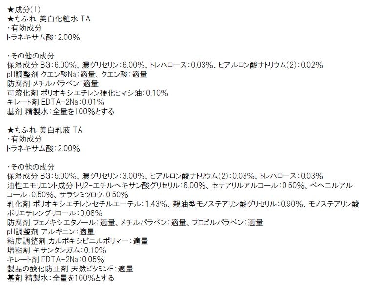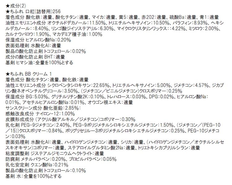【販売名】ちふれ 美白化粧水 TA、ちふれ 美白乳液 TA、BB クリーム 1、口紅 S(詰替用) 256