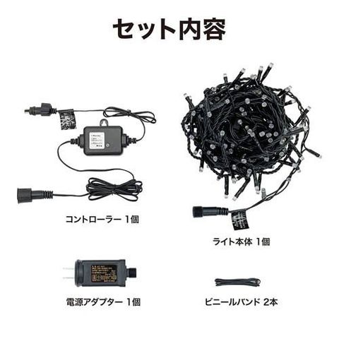 | コントローラー1個・ライト本体1個・電源アダプター1個・ビニールバンド2本 |