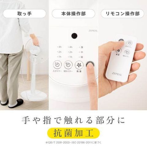 | 製品寸法:W352×D342×H785mm 製品質量:2.7kg 定格電圧:AC100V 定格周波数:50/60Hz 定格消費電力:28W/32W 電源コード長さ:1.6m ★抗菌効果 (1)取っ手(モーター前カバー含む):「抗菌の方法」PP樹脂に練り込み「試験方法」QB/T 2591-2003に基づく「試験機関」National Engineering Research Center of Engineering Plastics(中国) (2)本体操作部・リモコン操作部:「抗菌の方法」シート表面にコーティング「試験方法」ISO 22196-2011に基づく「試験機関」Centre Testing International Group(中国) ★静電気防止効果 加工箇所:羽根 ※社内試験基準による |