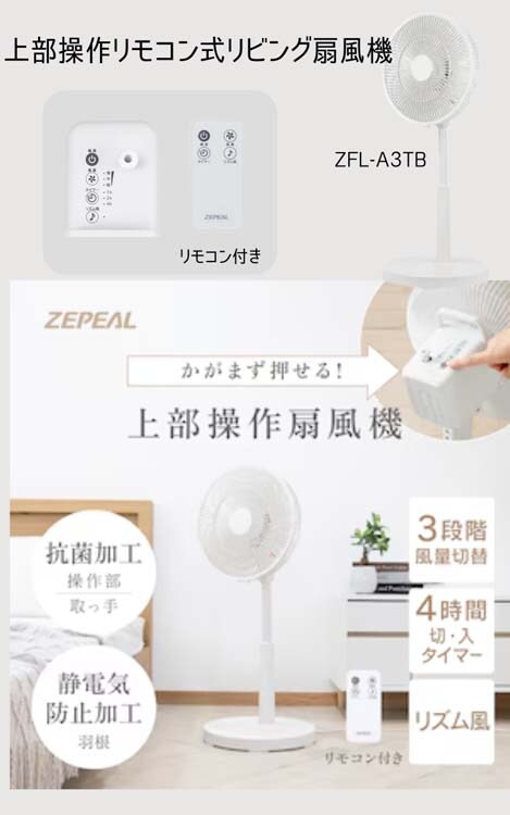 ゼピール 上部操作リモコン式リビング扇風機 ZFL-A3TB (1台)
