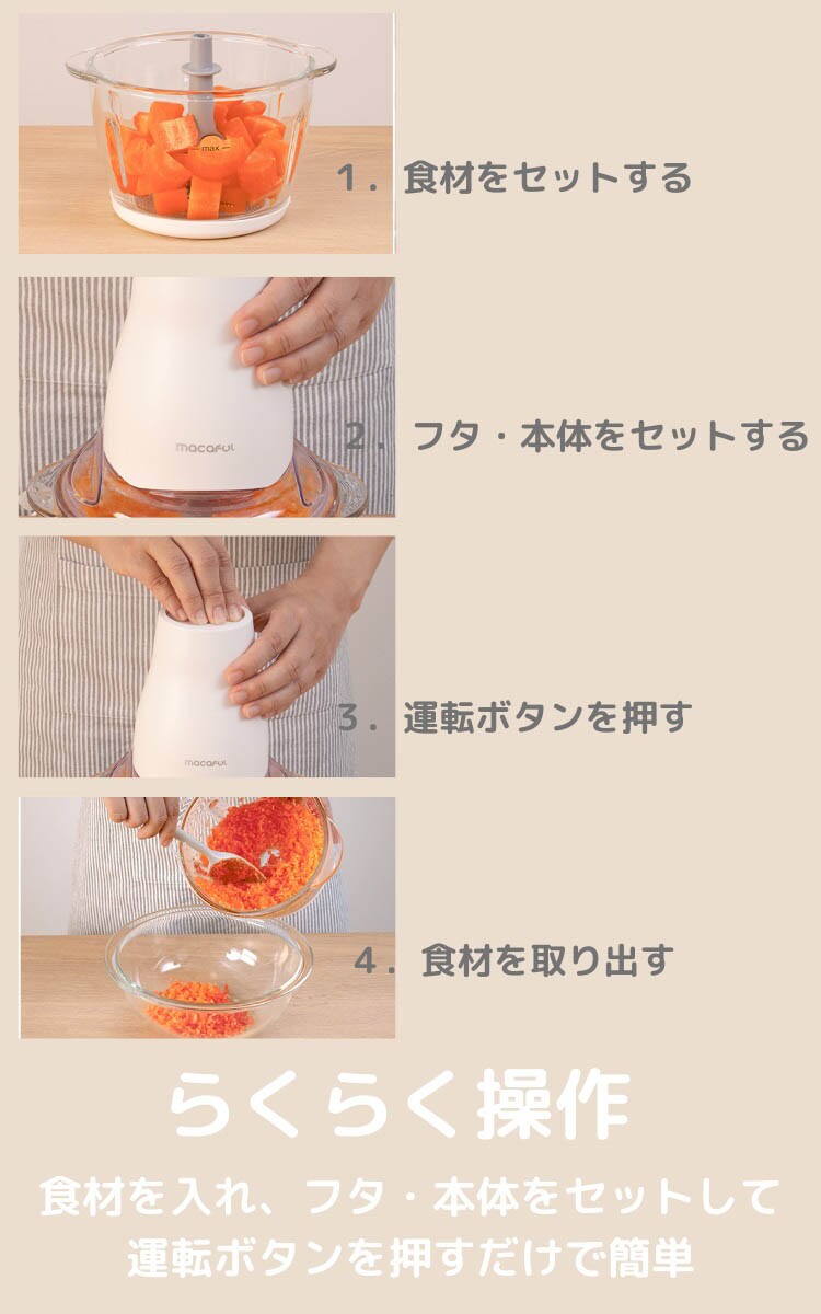 【マカフル らく洗いフードプロセッサー MKF-1B(W)の商品詳細】