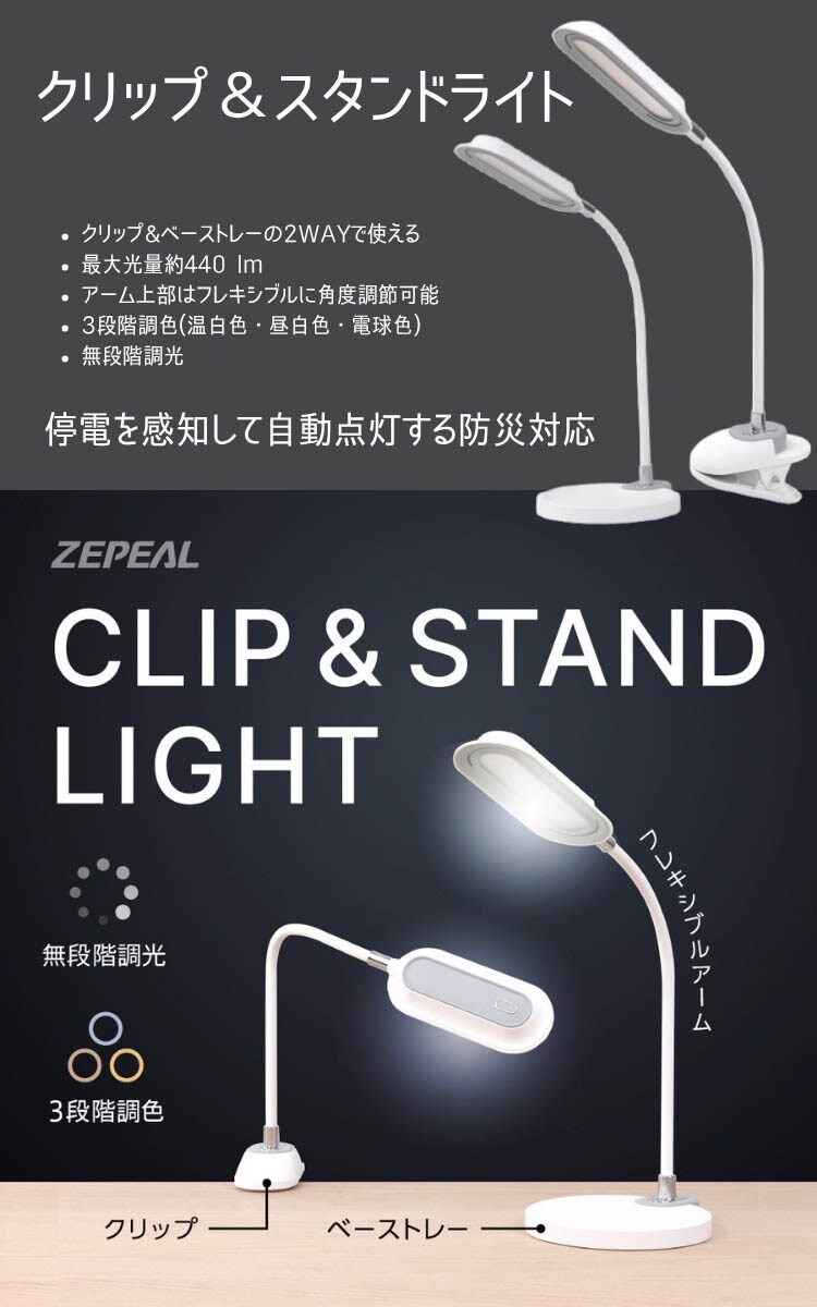 【クリップ&スタンドライト ZLT-30SB-Wの商品詳細】