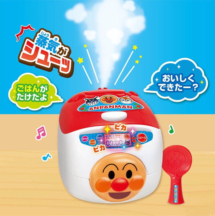 ●蒸気が吹き出るリアルなすいはんきがお子様を魅了しています。