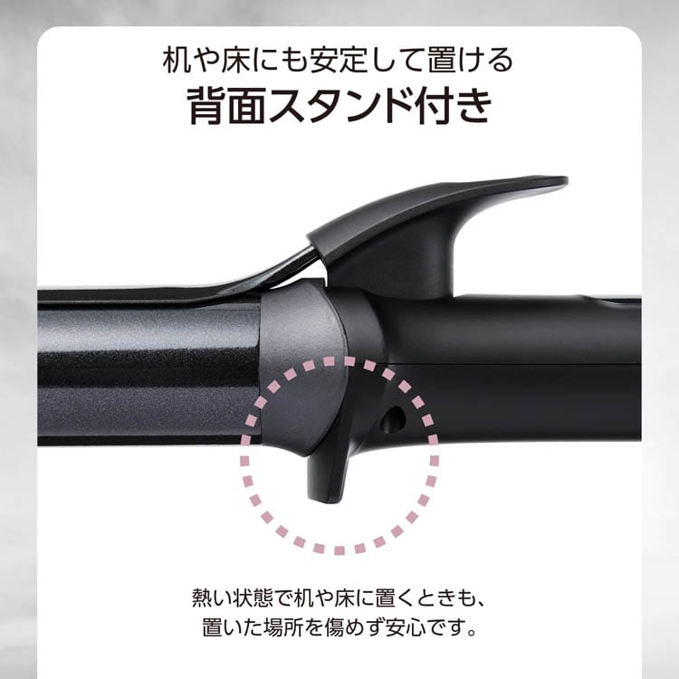 ●背面にはスタンド付き。熱い状態で机や床に置くときも、置いた場所を傷めず安心です。