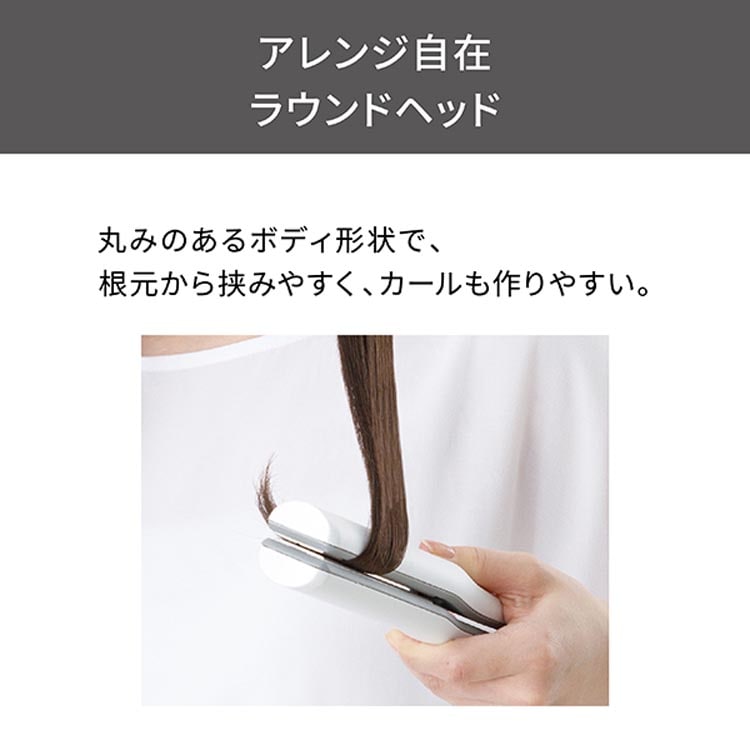 ●髪の流れに沿ってプレートが前後左右に傾いて、細かな毛束にも「ぴたっと」密着。毛先も後れ毛も逃さず、しっかりスタイリングできます。