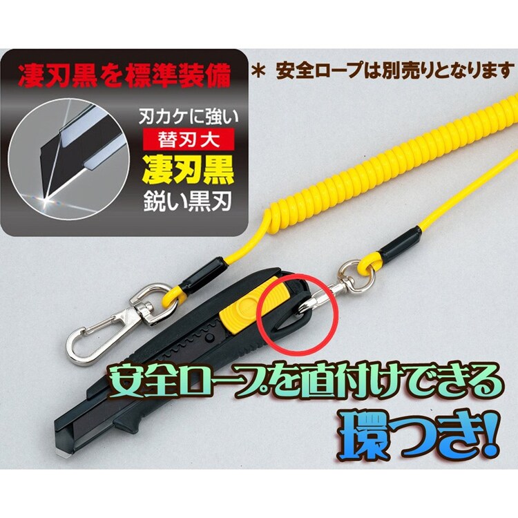 | オートロック式 替刃タイプ:L型替刃・凄刃銀・凄刃黒 安全ロープ取り付け環付き 凄刃黒標準装備(1枚+内蔵2枚) 替刃2枚内蔵可能 材質:グリップ:エラストマー樹脂 ブレードホルダー:ステンレス鋼 |