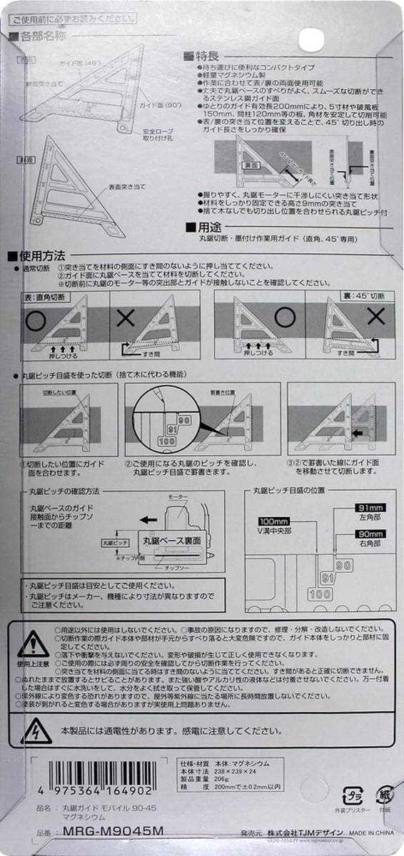 タジマ 丸鋸ガイド モバイル 90-45 マグネシウム MRG-M9045M (1個)
